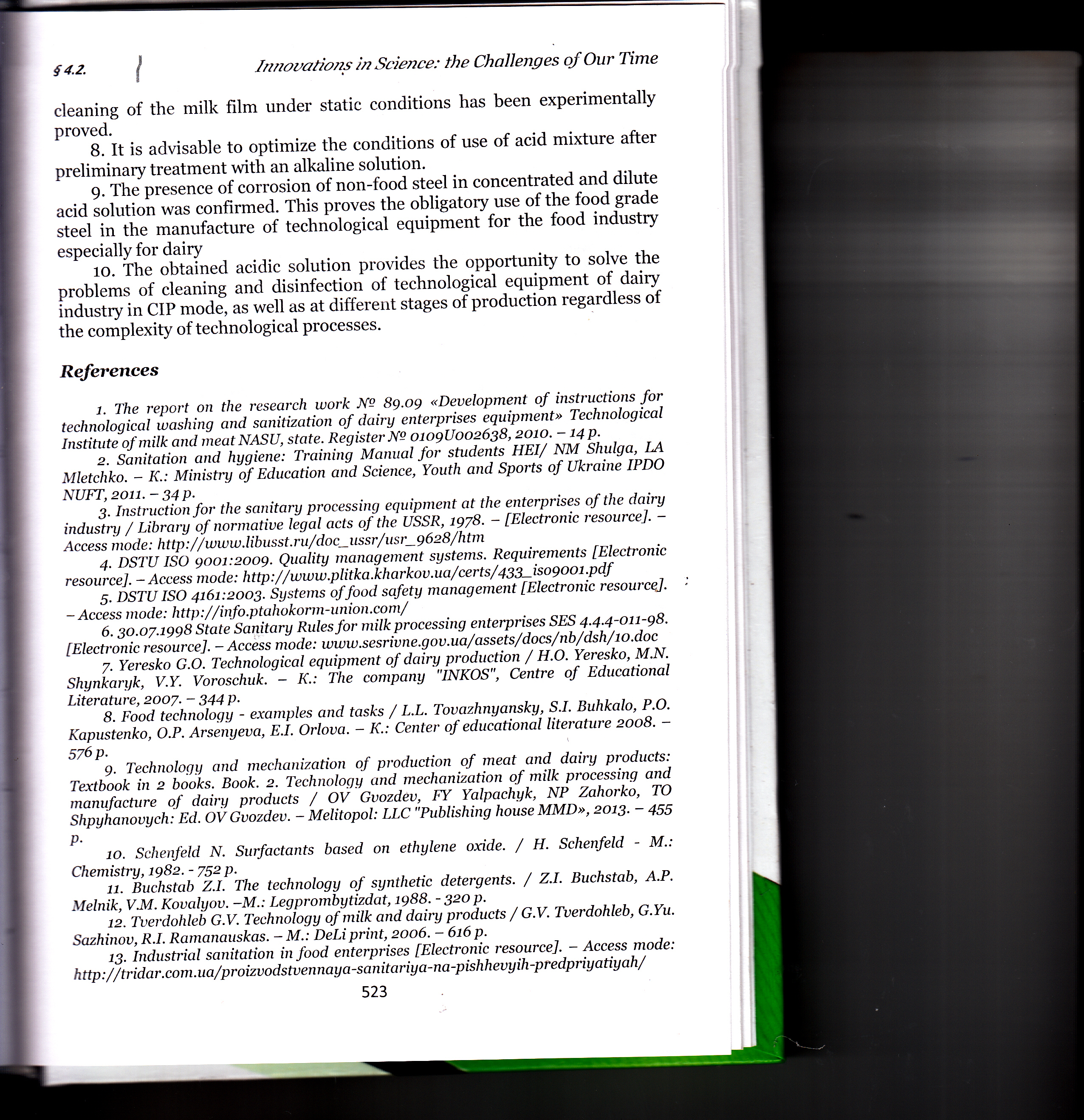 Innovations in the processes of cleaning and disinfection for dairy industry equipment