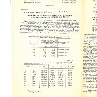 Получение и рентгеноструктурное исследование рубидий-неодимового нитрата Rb3[Nd2(NO3)9]