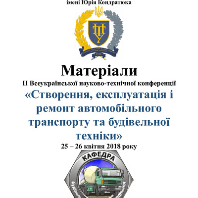 Матеріали ІІ Всеукраїнської науково-технічної конференції «Створення, експлуатація і ремонт автомобільного транспорту та будівельної техніки»
