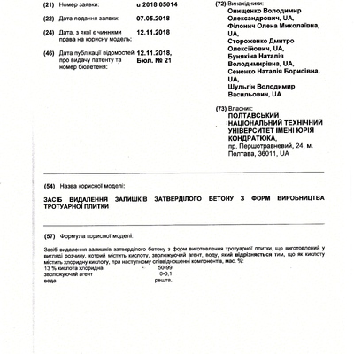Патент 129742 на корисну модель. Засіб видалення залишків затверділого бетону з форм виробництва тротуарної плитки
